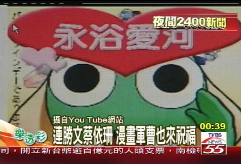 中新网1月19日电 已经公证结婚的连胜文和蔡依珊,22日即将宴客,而虽然计划中的到夏威夷的蜜月无法成行,不过网友对这对小两口的婚礼还是抱以无限祝福,还有人特别改编漫画军曹里的情节为两人庆贺。