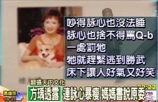 也在这本书中,连方瑀解答外界曾经怀疑连咏心得忧郁症,没有食欲到底是怎么回事?连方瑀说,连咏心在美国哈佛大学暑期班,看到外国人吃半生不熟的肉,觉得十分恶心,从此再也不碰肉和淀粉类食品。