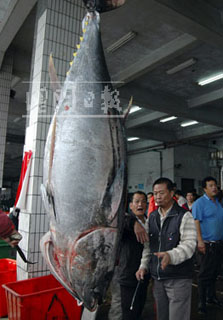 根据苏澳区渔会统计,去年黑鲔鱼的拍卖价,平均价格在650元左右,上午这条黑鲔鱼由于质量较佳,因此比平均价格高出许多。