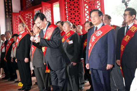 中新网4月29日电 台南市延平郡王祠今天(29日)举行郑成功开台346周年公祭典礼,政府官员及郑氏宗亲会理事长郑荣华与来自全台各地郑氏宗亲会代表参与祭典,场面庄严隆重。