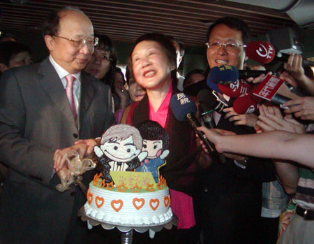 中新网5月12日电 台中市长胡志强今天度过六十岁生日,经历车祸大劫的夫人邵晓铃专程出院陪伴丈夫,让胡志强感动得再度落下男儿泪。