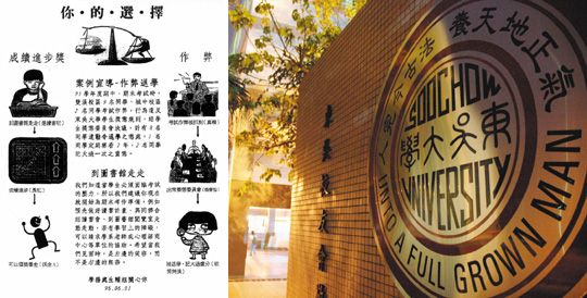 据台湾《联合报》报道,东吴大学发生建校百年以来最严重的学生集体作弊事件,共有八名作弊学生遭到退学,一名担任枪手的学生留校察看两年。校长刘兆玄指示,新生训练时将加强防弊倡导,并将此次作弊案例纳入文宣。