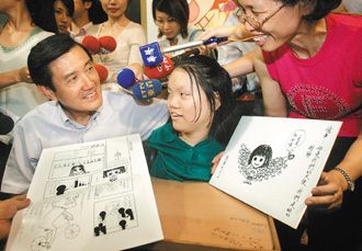 马英九说,他现在还是很喜欢看漫画,尤其是政治漫画,“以前看人家被修理觉得很爽,虽然现在自己常被修理,但还是看得很爽,重点就是要搔到痒处啦!”
