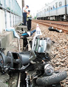 陈姓老翁纵火后,骑摩托车往台北县方向逃逸,在一处平交道遭火车撞毙,脸部被削去一半。据站务人员表示,老翁是在未戴安全帽情况下闯越平交道。