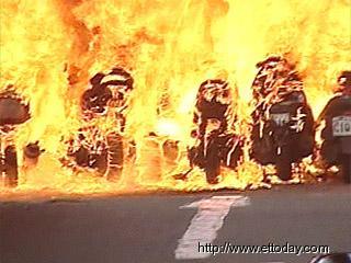中新网7月12日电 台北火车站附属的一个摩托车停车场今日(12日)下午五时许冒出浓浓黑烟,有多辆摩托车遭到火势波及,由于摩托车内都有汽油,火势愈烧愈大,消防局已经紧急动员救火,起火原因为何,还有待调查。