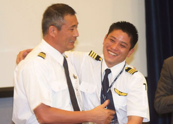 犹建国转头看着身旁的机组员,谢谢这些最勇敢称职的组员,他们接获指令精准地执行撤离动作并离开飞机,“没有他们,没有机会可以站在这边向大家致谢。”这时,犹建国拍了拍曾大为的肩膀,眼眶泛红,曾大为突然转身整个人埋到犹建国的怀里,还吸了吸鼻涕,露出了孩子向老爸撒娇的神情。鬼门关前走一回,记者会后机组员更是紧紧地拥抱成一团。