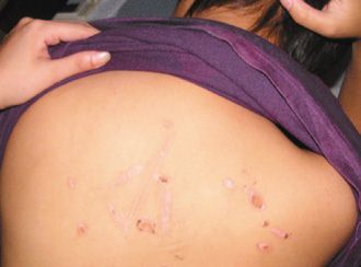 据台湾《联合报》报道,彭姓少女等人在潘姓少女背上刮皮刻字,留下约有拳头大的“小”字。彭姓少女事后还一再向潘女呛声,潘母发现后与其笔谈,彭女依然肆无忌惮,潘母乃于前天带女儿提告。