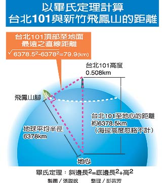卢时嵩以GPS卫星地图对照,发现101大楼就在观日亭的偏东北方向,他拍了许多相片后下山,又再用Google Earth查看,发现两地相距约80公里。