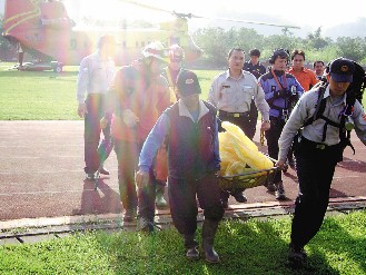 其中,台北市登山队领队赖松南可能因风雨失温致死,遗体今早已被搜救直升机寻获,以吊挂方式运回。