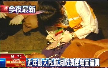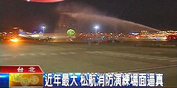 据台湾TVBS报道,熊熊大火愈烧愈旺,松山机场火烧机,连行李都来不及拿,旅客仓皇逃命拔腿狂奔,连身穿像极了太空装的消防队员都出动,气氛有够紧张;不过,这其实只是松山机场难得的演习,但场面真的很盛大。