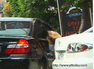 几分钟后,槟榔西施身体伸出来,这名驾驶似乎意犹未尽,手还整个贴在胸部上,而这时旁边刚好有人经过,完全不在乎,行径十分大胆。