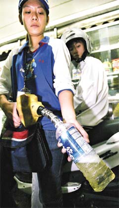 中新网10月31日电 台湾岛内油价周五涨价,确定会涨到历史新高,引发用油族的“囤油效应”,不少人最近纷纷带着瓶子上加油站,摩托车油箱加满后再“加满瓶”带回家,高油价意外点燃“汽油炸弹满街跑”的安全疑虑。