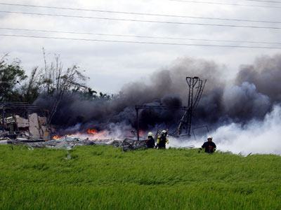 中新网11月2日电 台湾苗栗县后龙镇丰富里一家地下爆竹工厂,今天上午发生爆炸引发大火,整个厂房夷为平地,目前已造成两人死亡六人受伤。