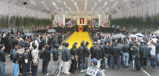 另据台湾《联合报》报道,告别式上午8点进行家祭,9点40分进行公祭,全部过程约三个半钟头。为了避免警察干预的困扰,治丧委员会遵守承诺,事先约制各路兄弟,出席的黑帮兄弟均未带旗帜,也未穿堂口制服。公祭唱名时,司仪也全都避开敏感的帮派、堂口名称,全改以公司行号、董事长称谓。