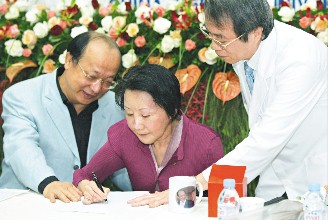 中新网11月18日电 据台湾《联合报》报道,台中市长胡志强的夫人邵晓铃昨天出院,她感谢所有人,并写“Thank you”感谢医师。主治医师郑隆宾说,邵晓铃大脑受伤,掌管语言、空间与动作的区域受损,连提笔都困难,笔划更是挤成一团,字体左右相反,单是名字就学了两个多月。