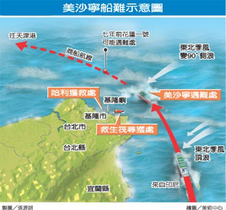中新网11月29日电 从印度尼西亚满载着铁砂驶往中国天津的巴拿马籍货轮美沙宁号(MEZZANINE),二十七日下午行经中国台湾鼻头角外海时,被米塔台风掀起的恶浪吞没。印尼籍水手长哈利在海上漂流一天一夜之后,二十八日下午在基隆屿海域获救,另二十九名船员迄今仍生死不明,分析情况不乐观。