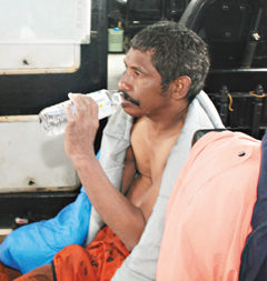 “我是船上的干练水手,我们二十四日从印度尼西亚新高打港出发,一直往北航行,躲过了台风。二十七日下午两点多在鼻头角外海时,风浪越来越大,而且从右舷打来,突然一个大浪打上船,把甲板上的船舱盖打掉了;再来的大浪把海水灌进装载铁砂的船舱,造成船舶不断倾斜,船长看到船舶倾斜角度超过安全标准就广播弃船。”哈利心有余悸地说。