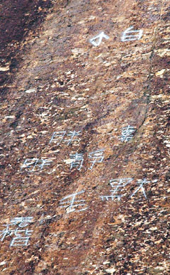 “粗坑大峭壁”每到假日游人如织,不少游客为纪念到此一游,在峭壁上任意喷字,如“月光”、“小白”、“活电手”等,还有情侣画上爱箭串双心,再写上两人名字,破坏自然景观。