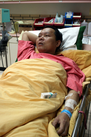 获救船员彭伯武躺在病房上,脸露惊恐,他说,当时风浪大,等到发现不对劲,大家穿上救生衣,还来不及拿多余的东西,船就沉了,全部的人都泡在冰冷的海水,风大浪大,眼睛根本张不开,要不是自己水性好,早就没命。