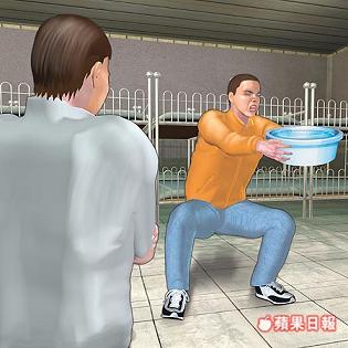 2、恐怖铁板桥:两手撑地,翘起臀部,在臀部放上脸盆及其它任何物品,只要东西掉下来即遭殴打。