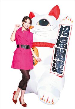 林志玲新春开工,学招财猫动作,祈求事业顺利。
