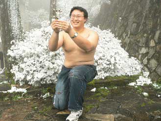 中新网2月14日电 一波波寒流带来银白雪花,台湾成功大学学生周汉勋昨天脱光上衣,跪在太平山雪地,向暗恋已久的锺姓学姐告白;义守大学学生陈泉潣则扛着重装备上合欢山,完成“滑雪初体验”。