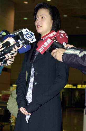 多年前喧腾一时的偷拍事件女主角璩美凤二月二十五日晚间自澳门返台,她表示此行返回台湾,将亲自接入狱服刑的沈嵘出狱。(“中央社”图;刘得仓摄)