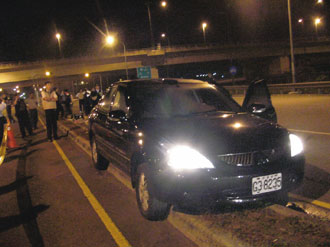 歹徒最初驾驶的赃车遇警盘查失控冲上分隔岛。(图:台湾《联合报》)