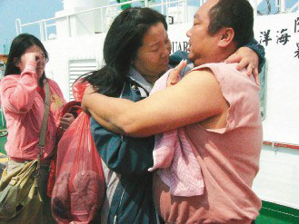 徐东诚是台东区渔会常务监事,妻女昨天赶到马公港等他回来,三人在岸上相拥而泣。太太赵淑敏表示,回家一定要老公吃猪脚面线压惊。林亚贡获救后则说:“台湾人说我是大陆人,但在海上,我们是一家人。”