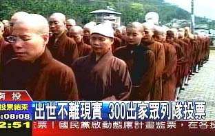 南投中台禅寺300多名和尚、尼姑列队投票。(图:台湾TVBS)