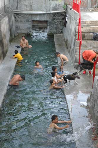 民众热的受不了,办公室上班民众打开冷气,老人家则聚在树下乘凉,小朋友则前往溪流戏水消暑。