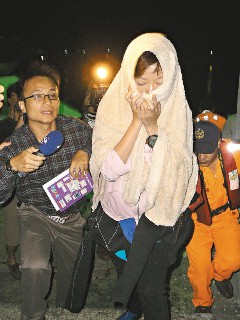 垦丁昨天八名潜水客失踪,同船一名游客昨晚上岸后,心情沉重,披着大毛巾不发一语。 联合报图