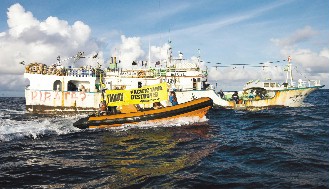 台湾籍海钓渔船“和财发18号”遭绿色和平组织拦阻。