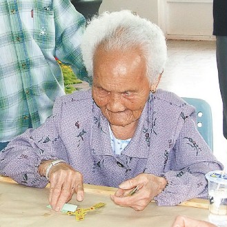 中新网5月7日电 “胡啦!”苗栗县96岁的廖金妹老太太目不识丁,但玩起传统四色牌却很强,在一场银发族竞赛中,她击败各路好手晋入决赛,简直是“高龄女赌神”,问她怎么认牌?她说“啊哉”(“不知道”之意)。