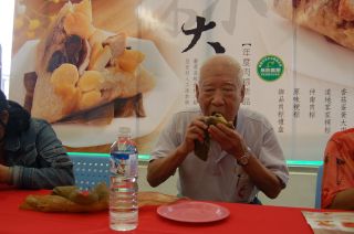 中新网5月16日电 端午节将至,台湾中部一家超市举行肉粽新品上市发表会,还推出顶级肉粽大胃王pk赛,吸引七十多人报名。有九旬老翁当场报名,抢当大胃王。