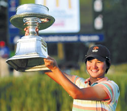 据“中央社”报道,曾雅妮今天兴奋的指出,这是继8日赢得女子职业高球锦标赛冠军后的另一项殊荣,她并期待在圣地亚哥球场跟自己的偶像老虎伍兹见面。