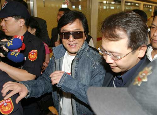 成龙的私人专机是在上午十时三十分左右降落在桃园机场,为避免有人滋扰和捣乱秩序,航空警察局派出二十余名警力维持秩序,成龙一步出关就有人持抗议纸条表达“台湾不欢迎你”等语,也有人大声表示欢迎来台,成龙被保全人员围住以及维持秩序的航空警察局霹雳小组成员保护,但抗议人士仍不死心,突围进入准备吐口水,但随即被航警局刑警拉往外围,最后成龙在媒体的包围采访下登车离开机场。