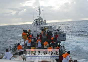 16日凌晨2点30分,“全家福”号距钓鱼岛40海里,2艘日本海上保安厅巡视船出现在不远的薄雾之中,日方发出灯光信号,要求“全家福”号改变航向。