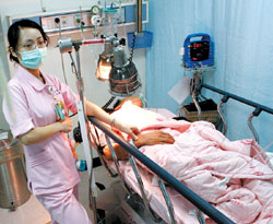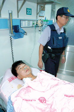 洪某受伤躺在医院。(图:台湾《中国时报》)