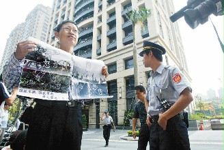 吴淑珍19日又不出庭,陆续有民众看不下去,到陈水扁住处所在大楼附近表达不满。(图:台湾《联合报》)
