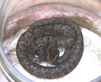该男子说,“蛇几乎无所不在”,一到三楼包括厕所等房间、酒柜、天花板都曾出现蛇踪,“半夜起床小便,蛇从脚边滑过,冰冰、软软的,当场全身起疙瘩,现在不开灯不敢在房内走动”,一直要到天寒蛇冬眠才能安心。