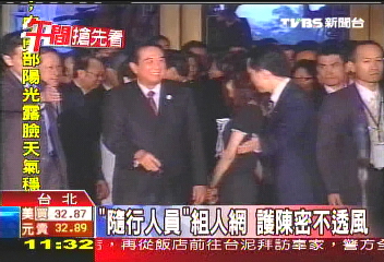 报道称,陈云林此次赴台,除了台湾出动大批警力保护外,陈云林也带着贴身随行人员。依据对等原则,台湾方面同意陈云林随行人员随团。