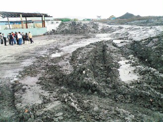 昨天会勘现场,大家发现滥倒的情形确实很严重,其中有一场被倒满近两万立方米建筑开挖地下室的烂泥巴,众人不禁瞠目发怒。