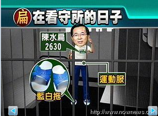 陈水扁意气风发不再,“2630”换囚衣与蓝白拖鞋。图片来源:台湾“今日新闻”