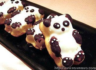 业者说从九月起就开始研发这一款“熊猫蛋糕”,以因应即将来临的“熊猫热”。业者说,可爱的熊猫造型,黑跟白的部分都是用瑞士来的巧克力,吃起来甜却不腻,加上上面所黏的椰丝,越咀嚼越香,非常好吃。而且里头还加了来自瑞士的糖渍柑橘丁,配上一些新鲜柳橙皮,增加果香。让熊猫蛋糕咬下去口感丰富,一口接一口,细细咀嚼中还可以感受椰丝香气。
