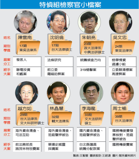 特侦组侦办扁案,超越过去分组办案模式,包括主任陈云南、检察官沈明伦、朱朝亮、吴文忠、越方如、林(吉吉吉)慧、李海龙、周士榆等8人共同纳入项目小组,协同办理这件世纪大案。