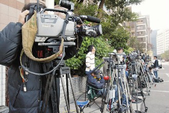 涉及四大弊案获释的陈水扁返回居住的宝徕花园广场,屋外大批媒体守候。(来源:台湾《联合晚报》)