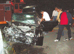 中新网12月15日电 台湾七名居民分乘两辆车,从高雄前往屏东观看赛车,十四日凌晨回程时,疑因前车路况不熟加上车速过快,失速撞上路边护栏,造成两车共三死四重伤的惨剧。