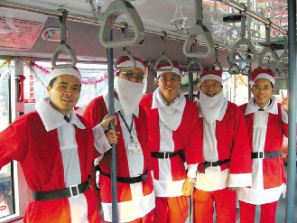 不仅如此,24、25日两天,乘客只要穿着圣诞服及圣诞帽,就可以免费搭乘客运联营公交车路线。有的公交线路,圣诞老人还会免费奉上热咖啡。