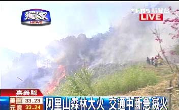5公顷的林班地,突然发生大火,导致阿里山公路因为浓烟与火势关系无法通行,警消已出动直升机,抢救灭火。